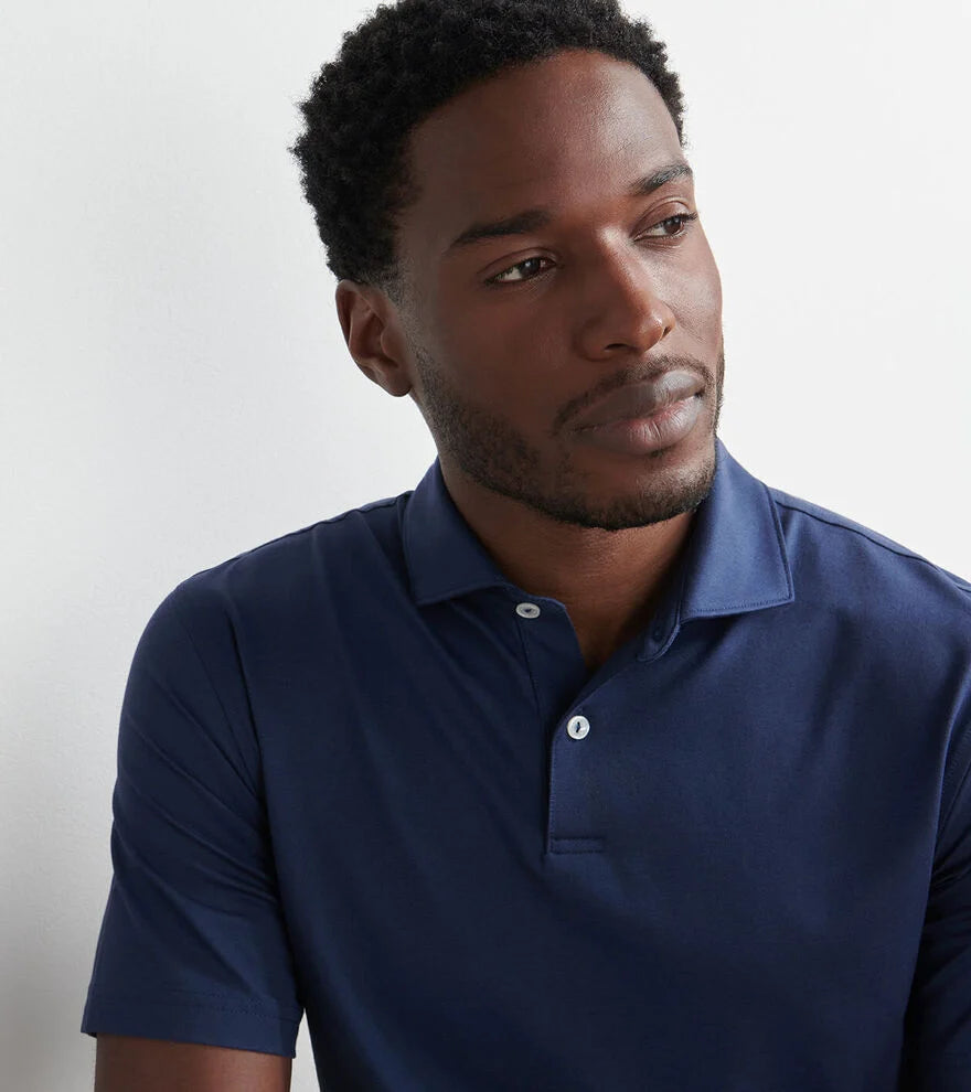 Our take on an all-around 12-month polo is the ideal blend of traditional and technical. A pima cotton base brings softness and classic texture, while blended performance yarns bring four-way stretch and keep you cool and dry. Designed in an Oxford piqué knit, it's finished with mother-of-pearl buttons and a signature reinforced spread collar.