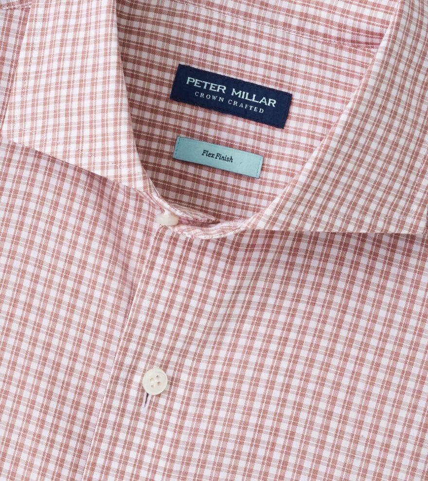 This sport shirt is made from an exceptionally soft cotton and is designed with our signature Flex Finish, a process that allows for stretch comfort in a full natural fiber fabric. Finished with a spread collar, French placket, mother-of-pearl buttons and mitered cuffs.